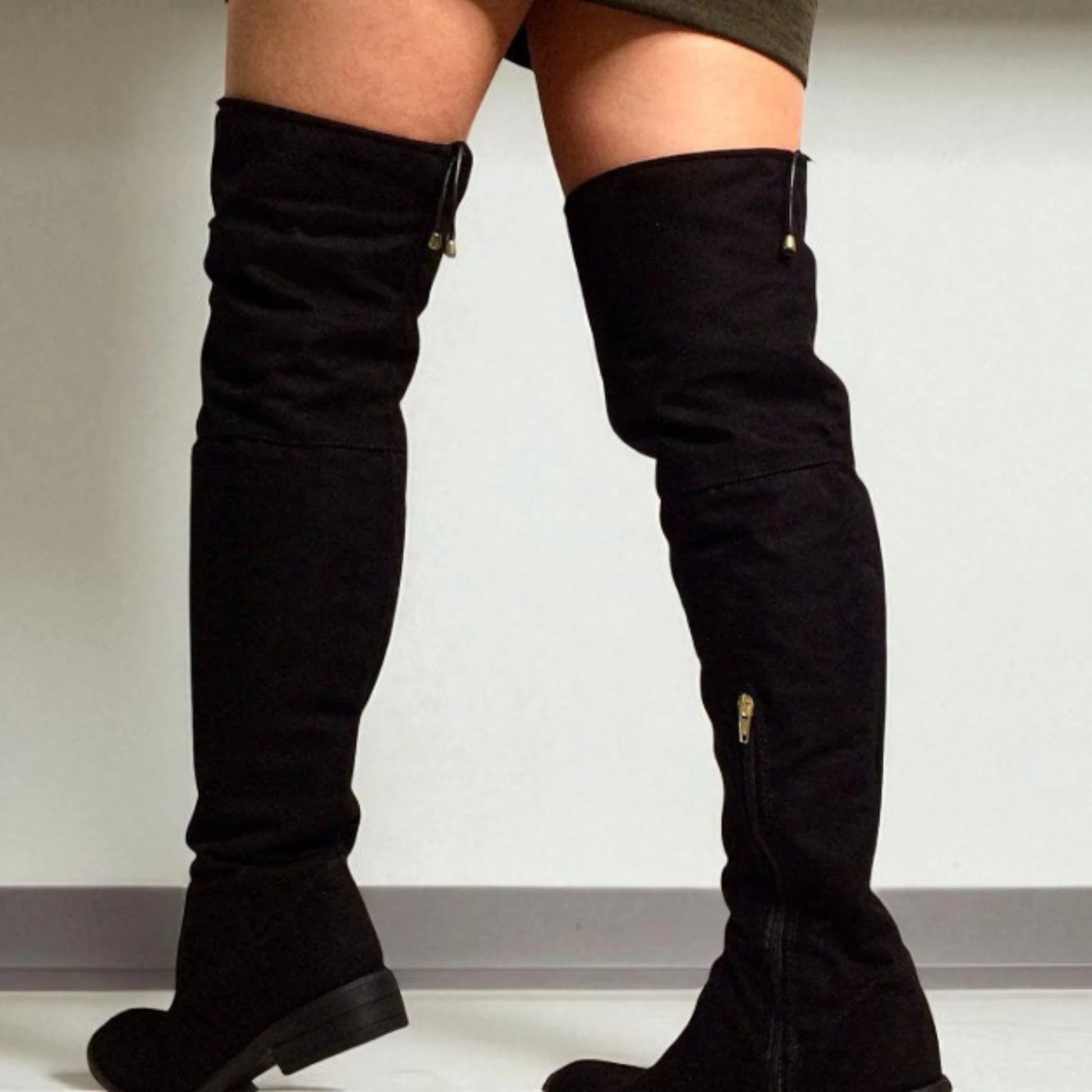 BOTA PLANA — MODA, COMODIDAD Y FUERZA URBANA ¿Lista para dejar huella? Nuestras Botas Planas Rígidas Over The Knee en color negro son la declaración de moda que estabas buscando. Con una imponente caña que llega por encima de la rodilla y una cordonera audaz, están diseñadas para mujeres modernas que aman sobresalir.